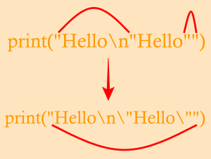 파이썬은 print()안의 큰따옴표가 4개니 2개씩 묶어
